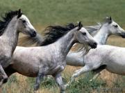 Grey Arabian horses running