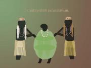 This is an illustration from a book based on an old traditional Native American story. In this picture, the old man turtle is dancing between the young maidens.