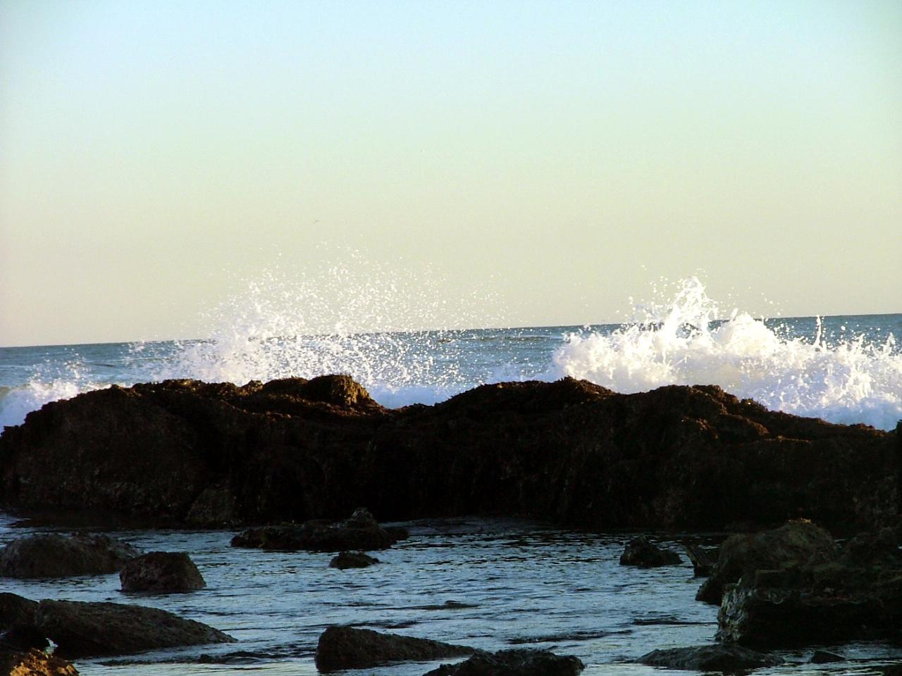 rocks meet waves while calm tide pools settle in foreground